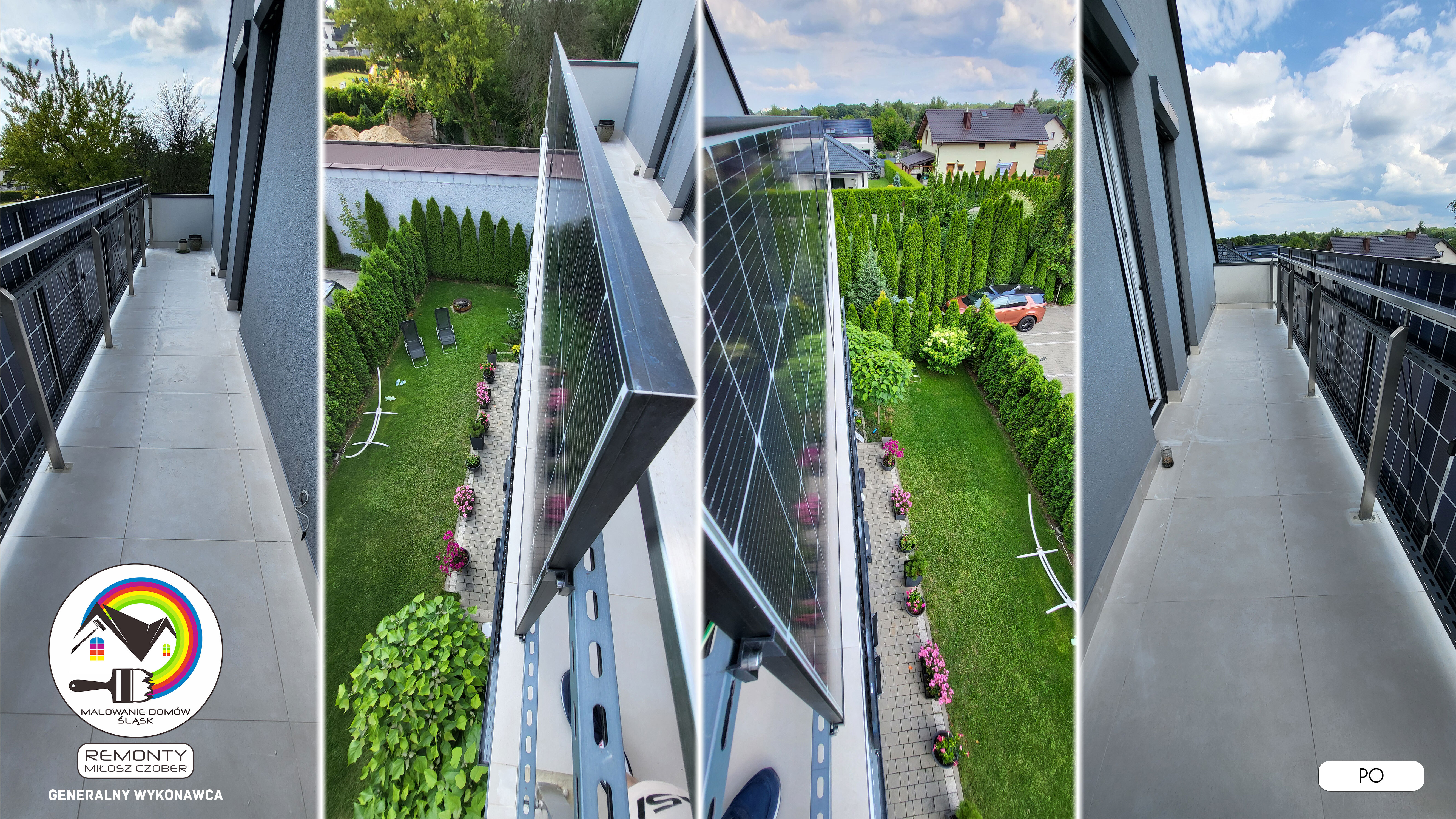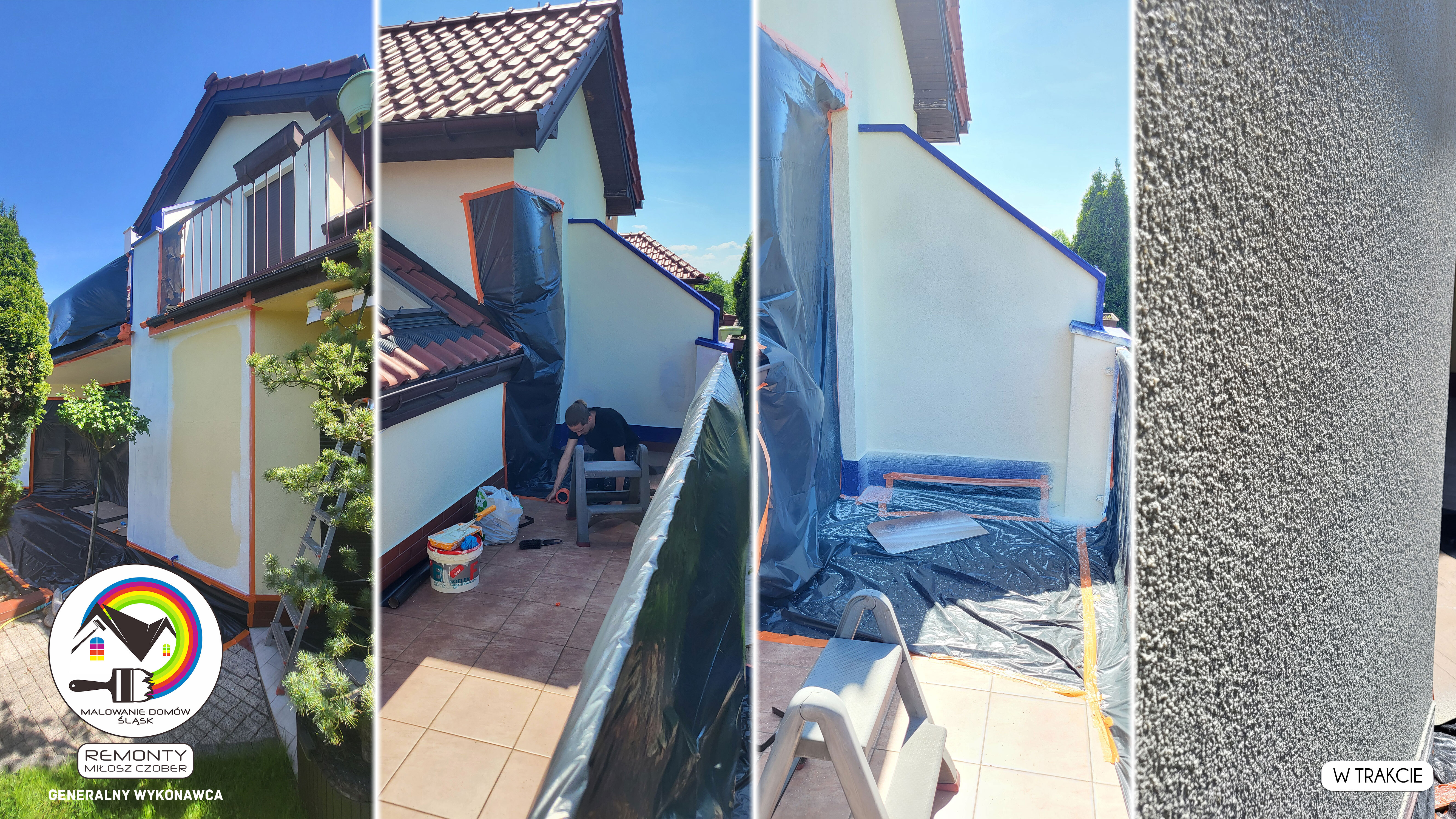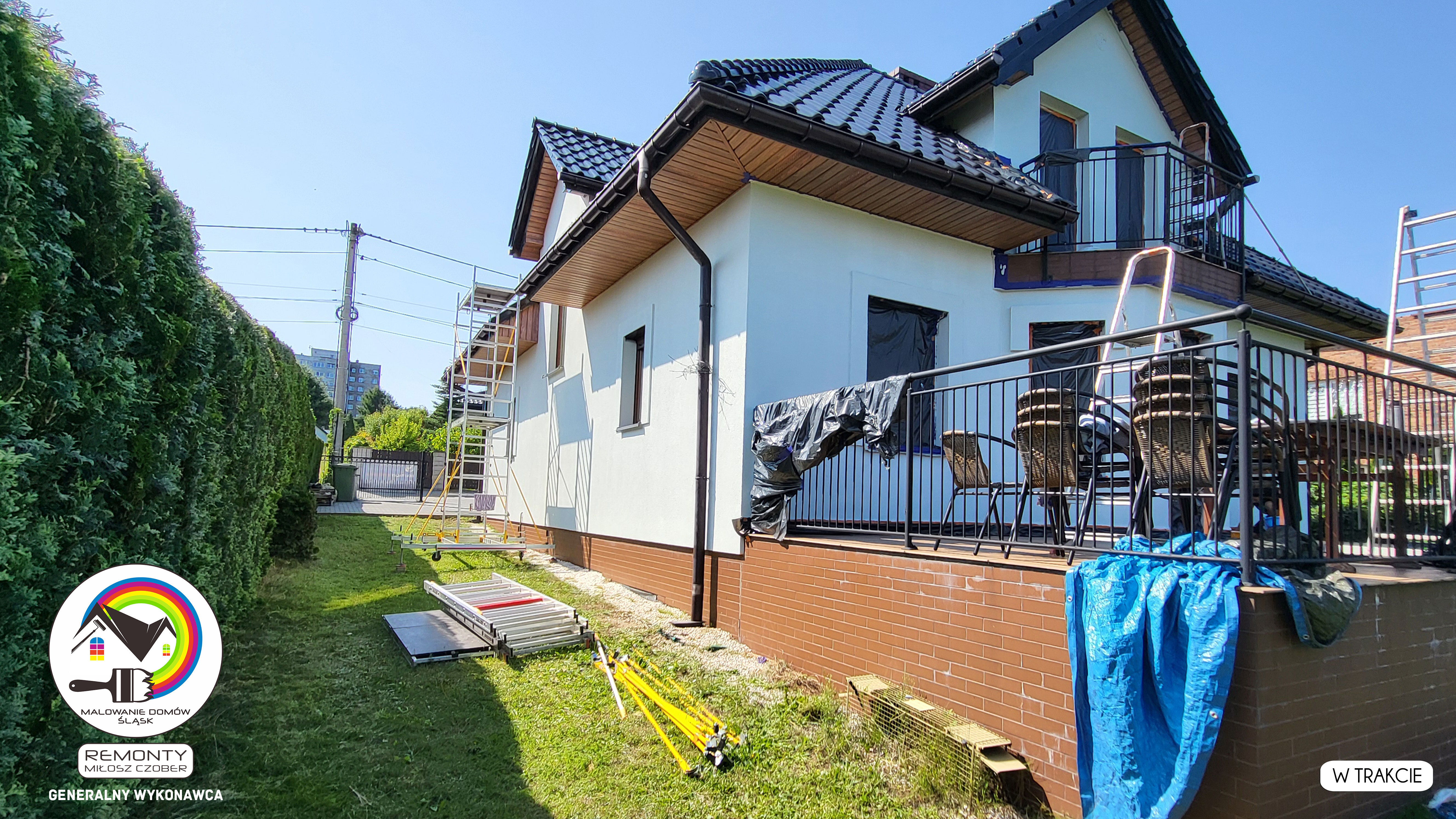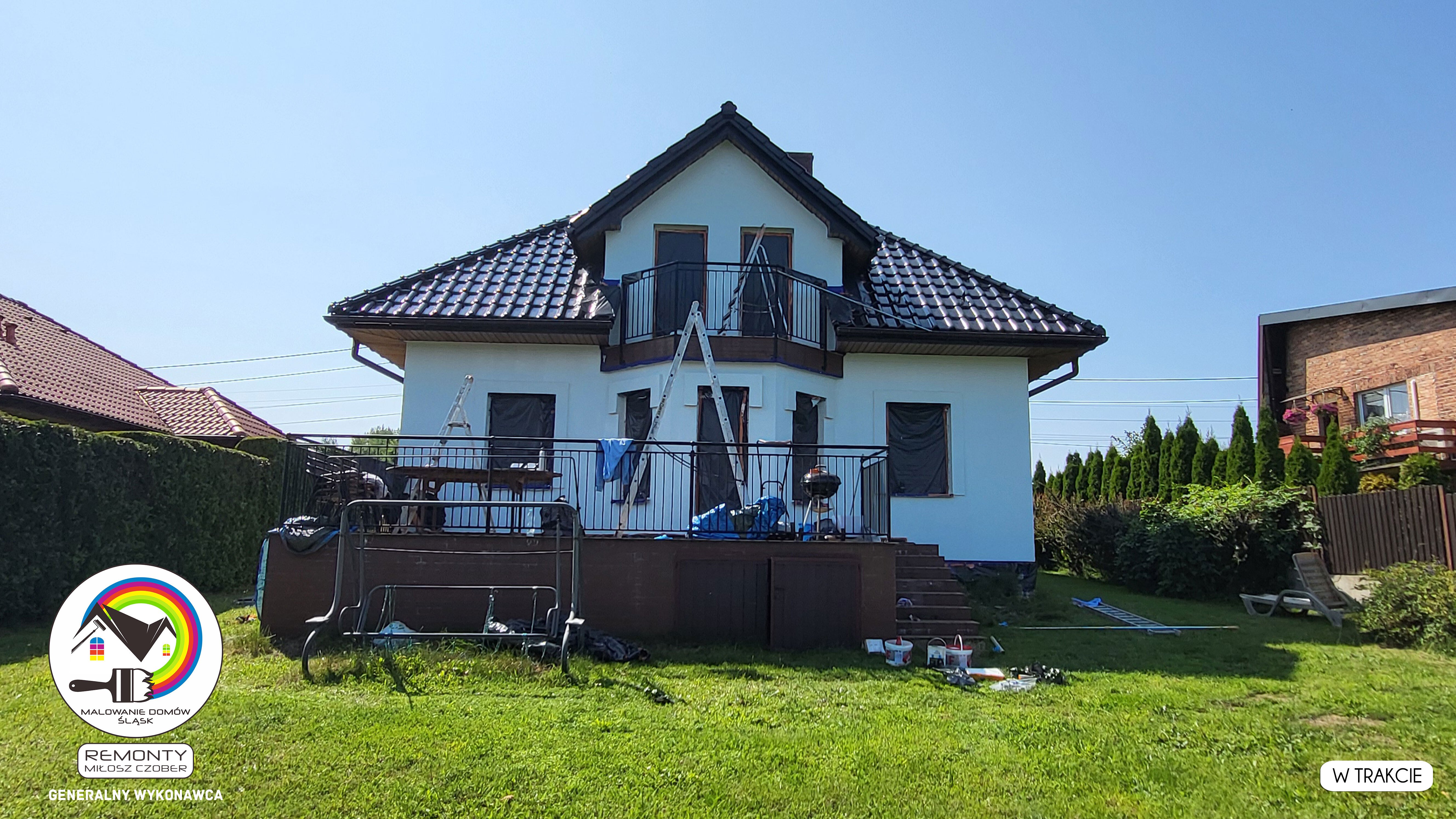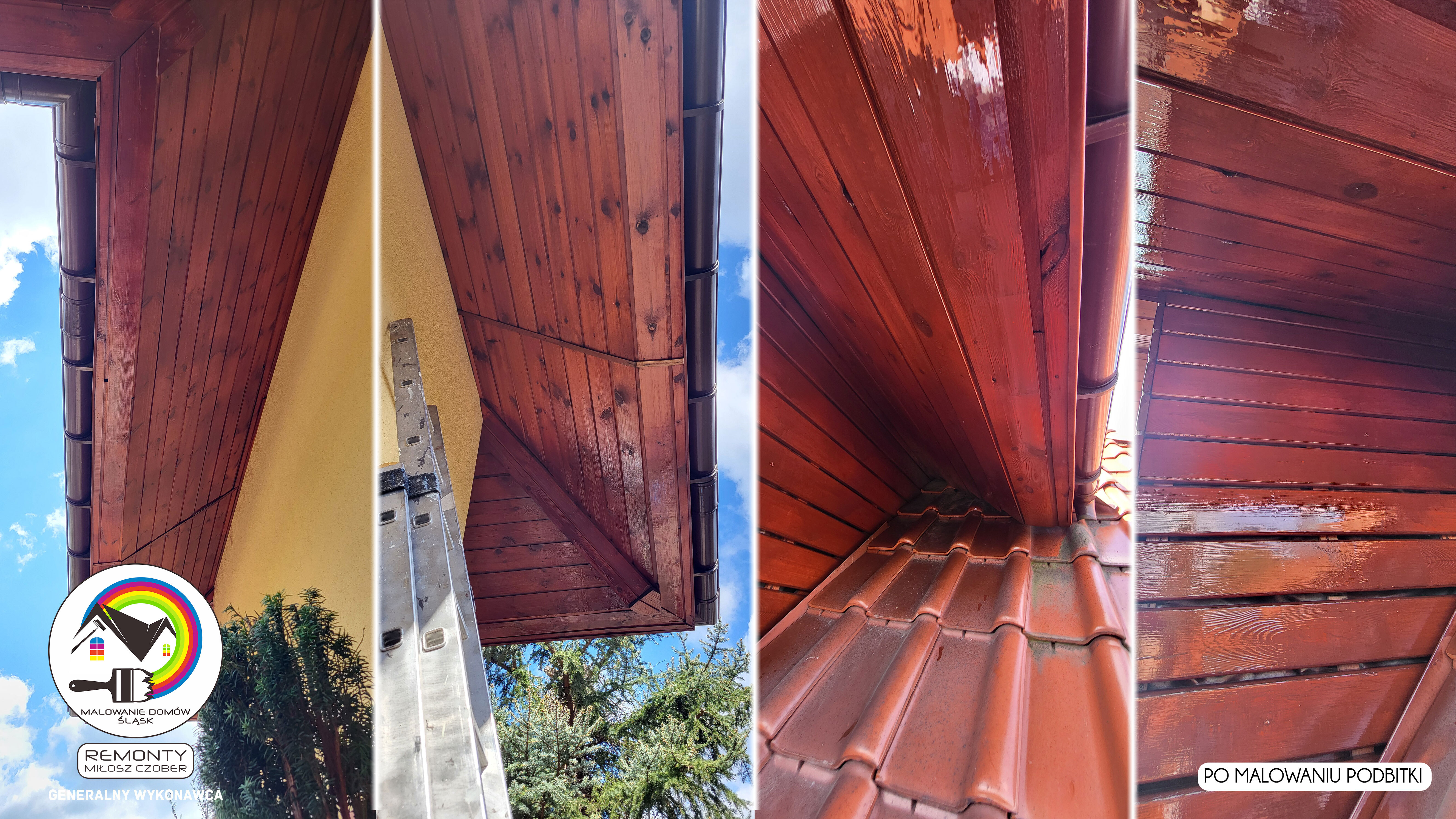 Zakres wykonanych prac: malowanie elewacji / naprawa / zabezpieczenie ściany / montaż systemu rynien / wymiana podbitki dachu / odświeżenie dachu / szlifowanie / malowanie / szlifowanie dachu / porządnie do samej blachy :-) / dach po odświeżeniu / całkowita wymiana fug na tarasie / efekt końcowy po wymianie fug / dodatkowe czyszczenie / wymiana paneli na tarasie / efekt końcowy wymiany paneli.