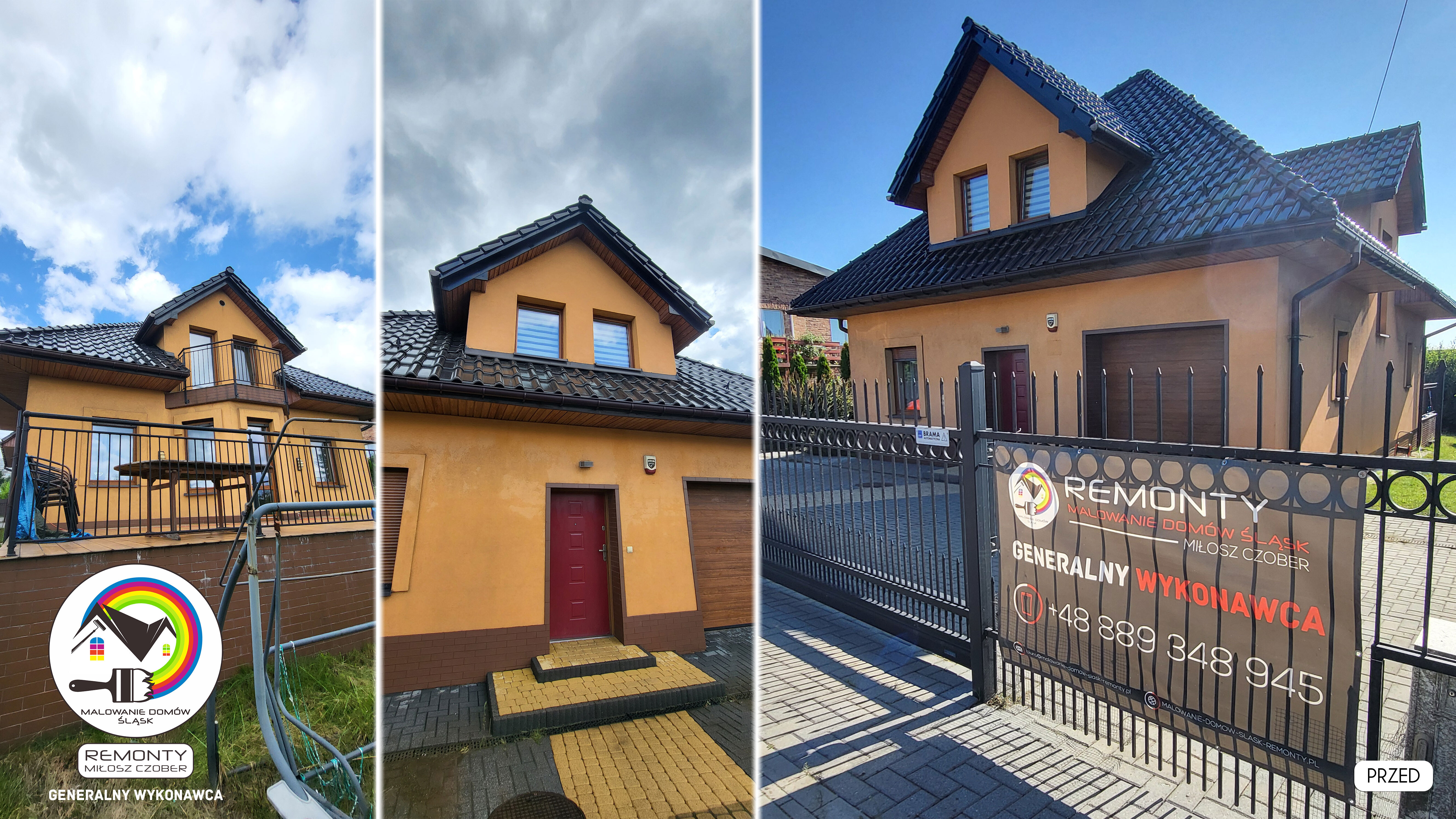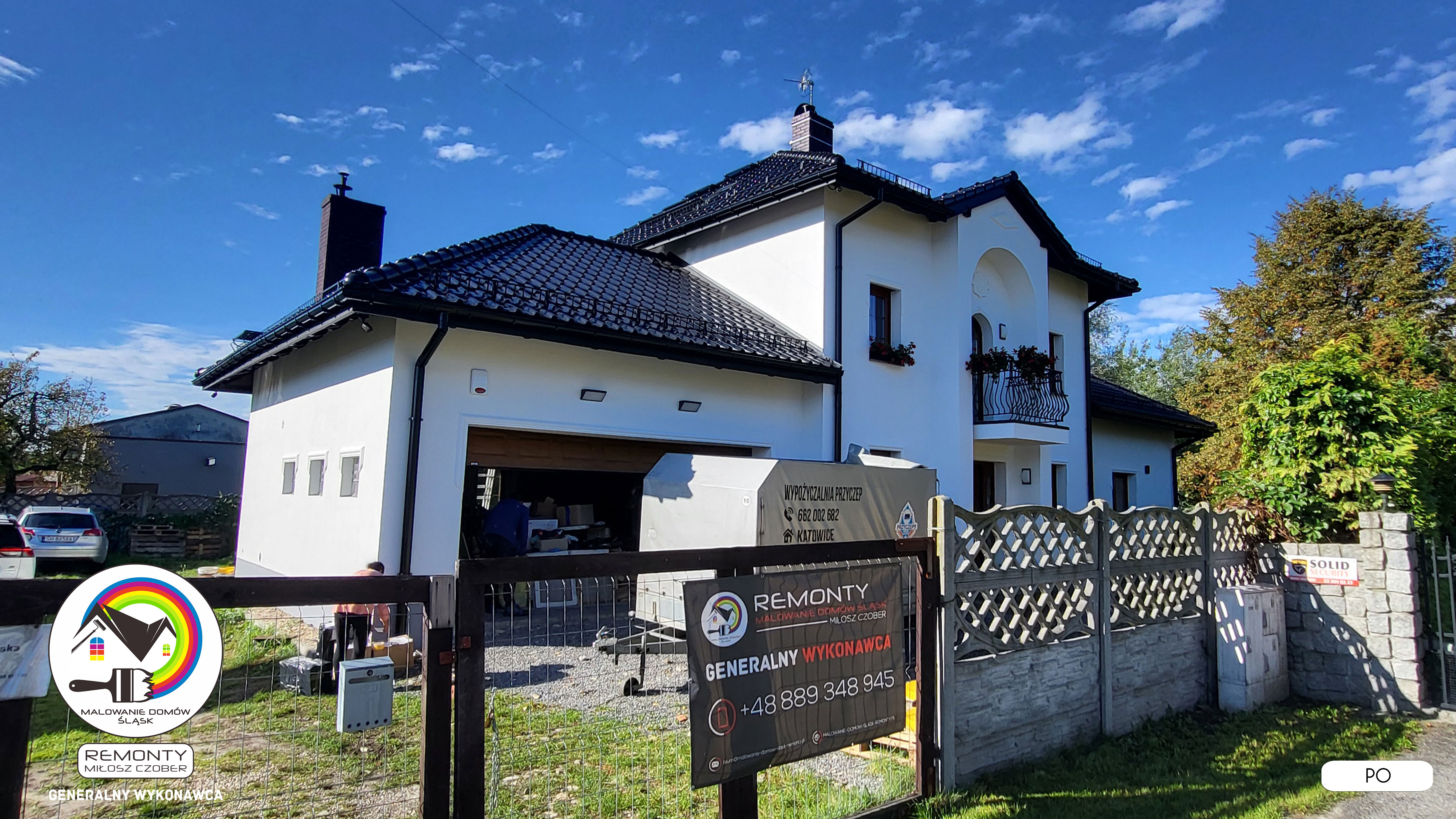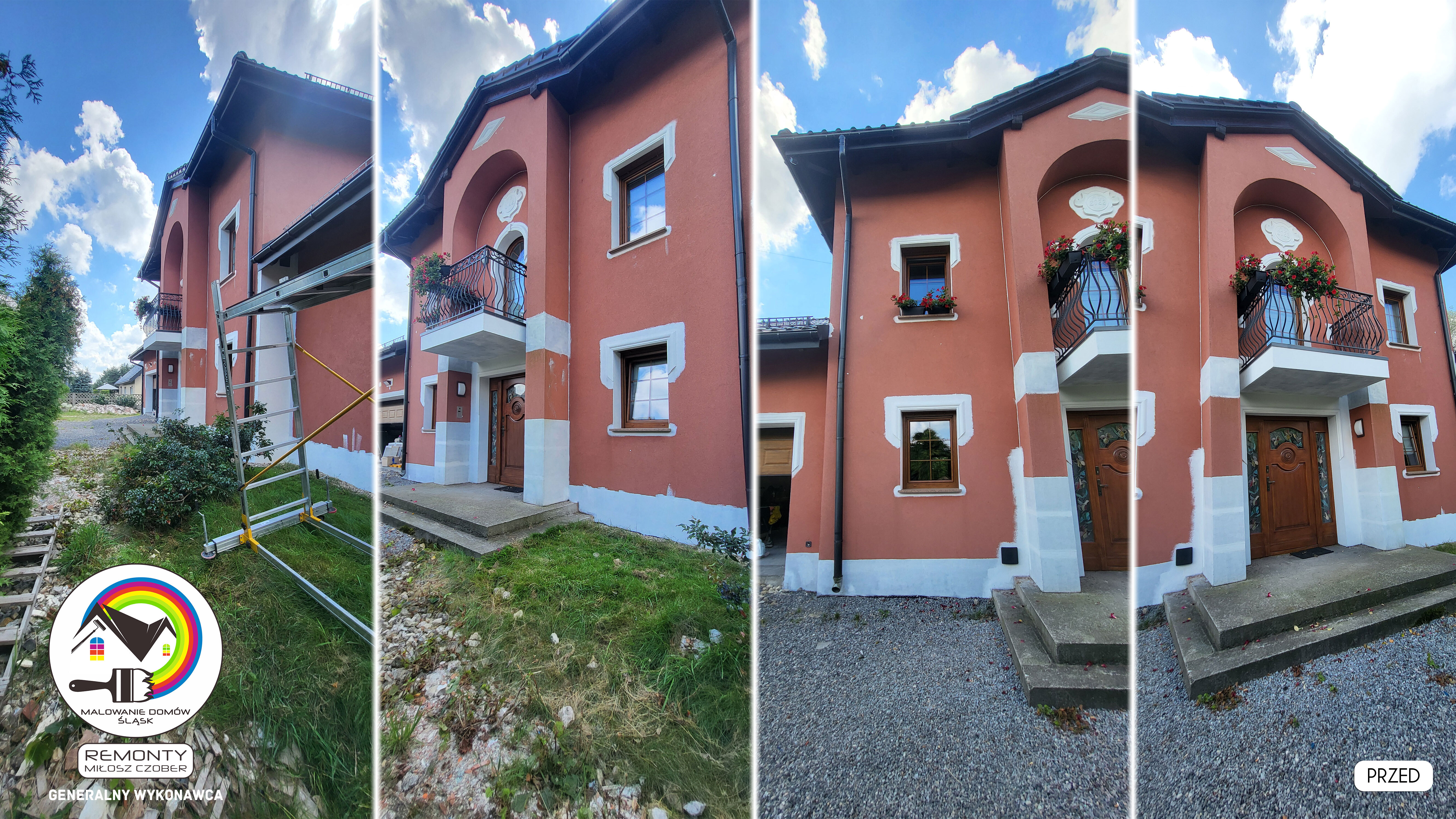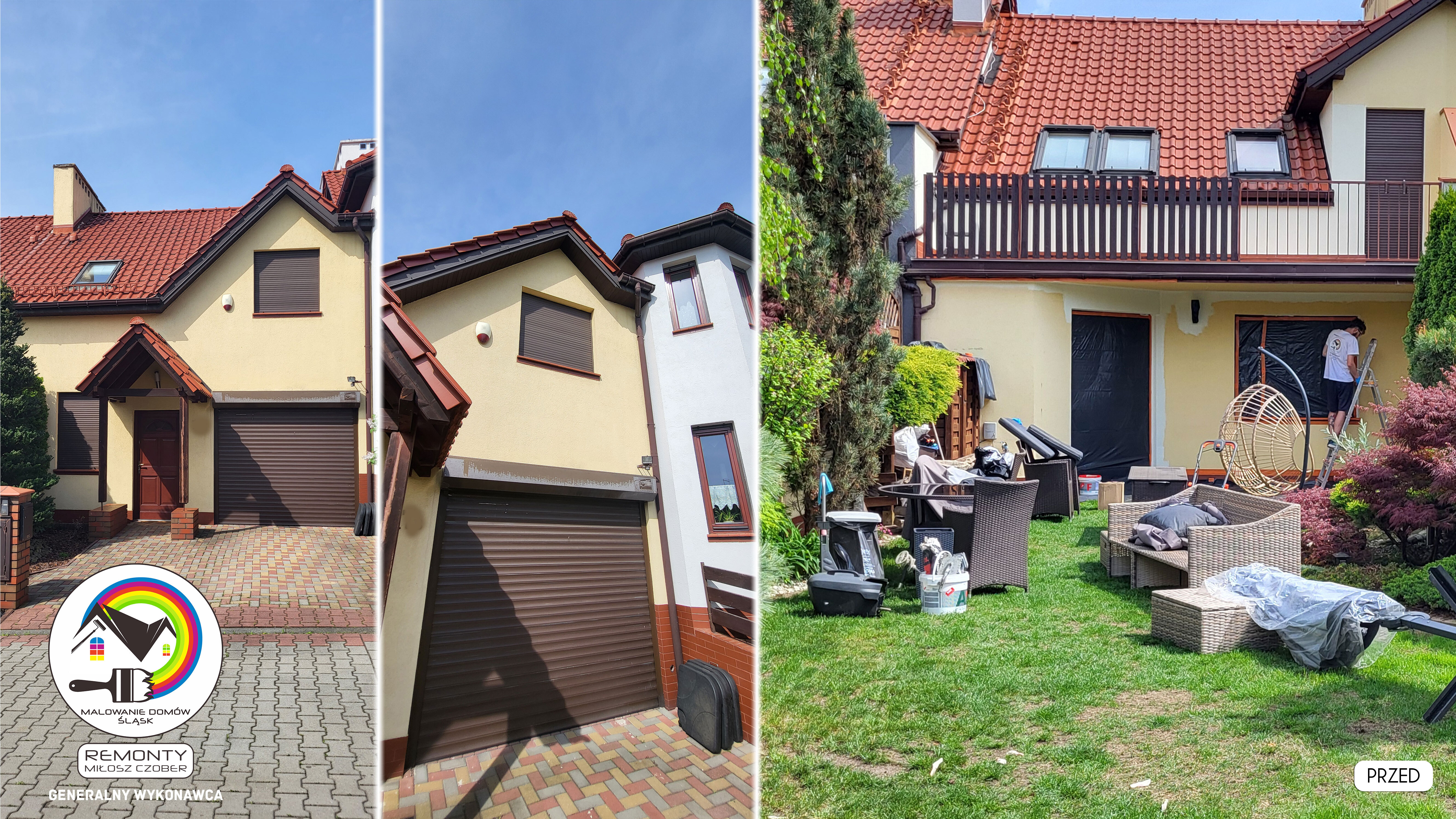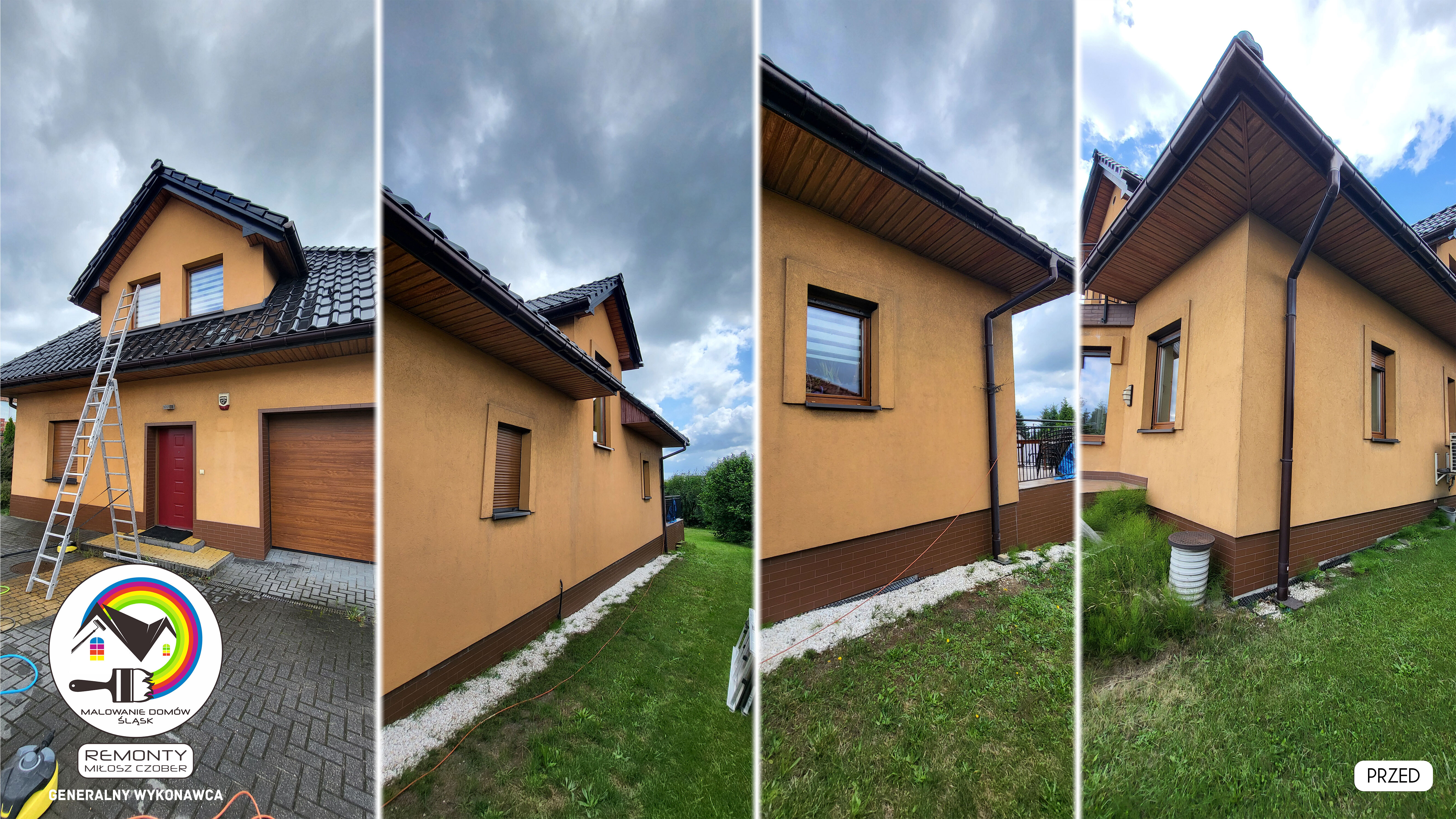Zakres wykonanych prac: malowanie elewacji / naprawa / zabezpieczenie ściany / montaż systemu rynien / wymiana podbitki dachu / odświeżenie dachu / szlifowanie / malowanie / szlifowanie dachu / porządnie do samej blachy :-) / dach po odświeżeniu / całkowita wymiana fug na tarasie / efekt końcowy po wymianie fug / dodatkowe czyszczenie / wymiana paneli na tarasie / efekt końcowy wymiany paneli.