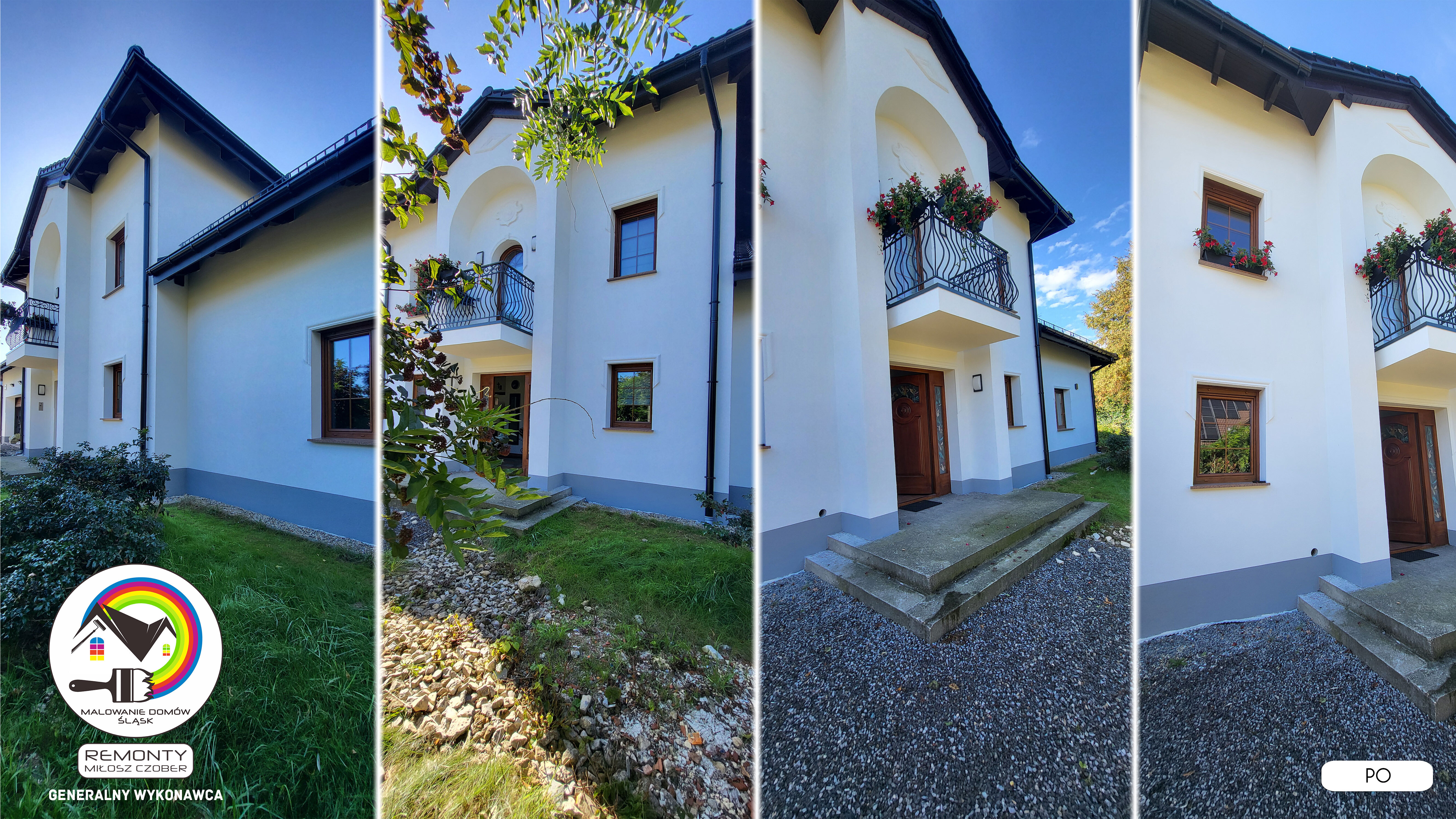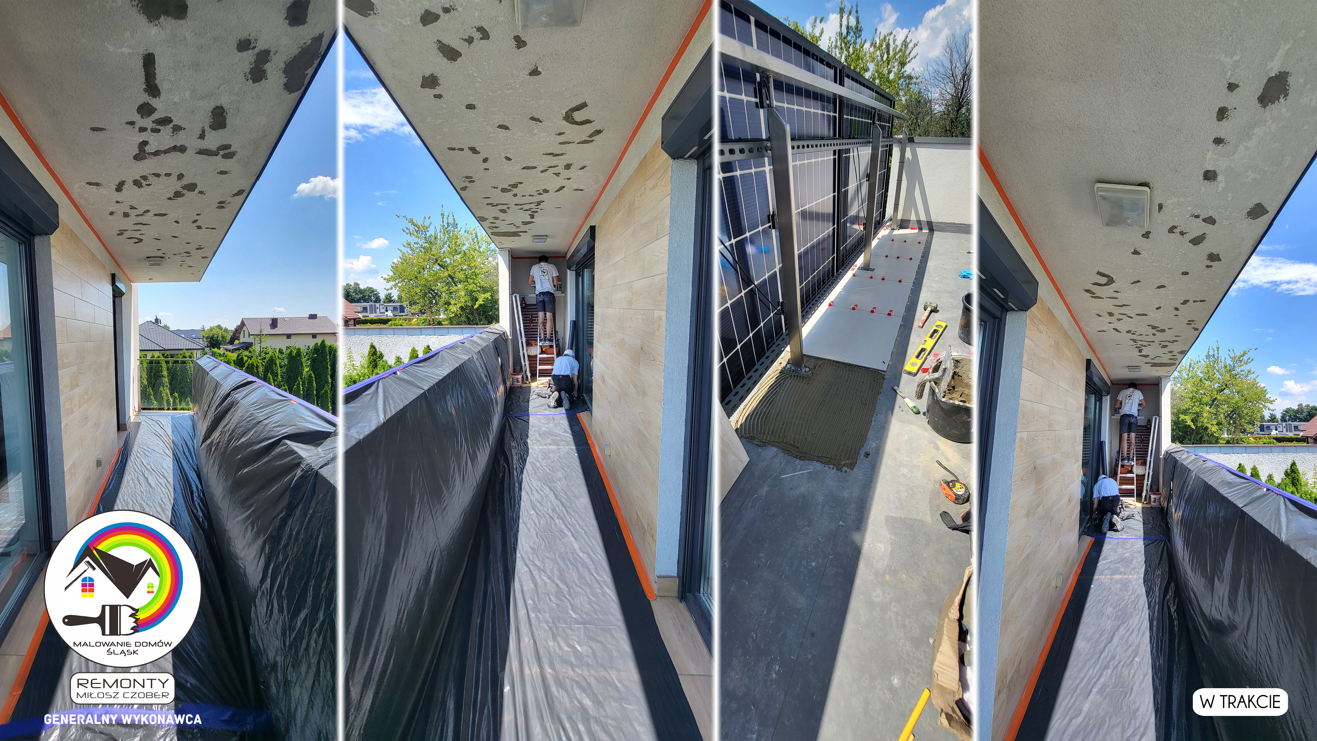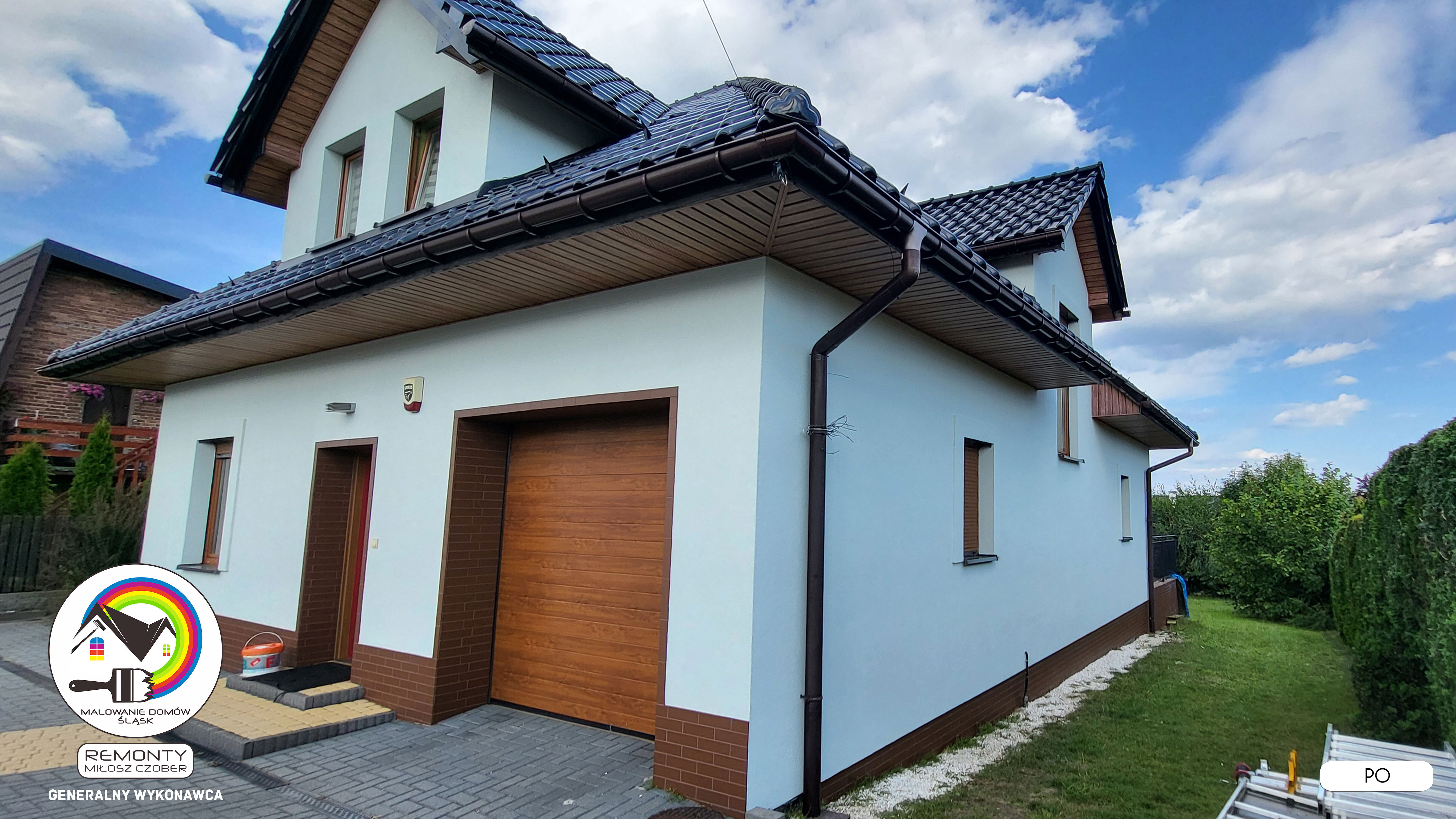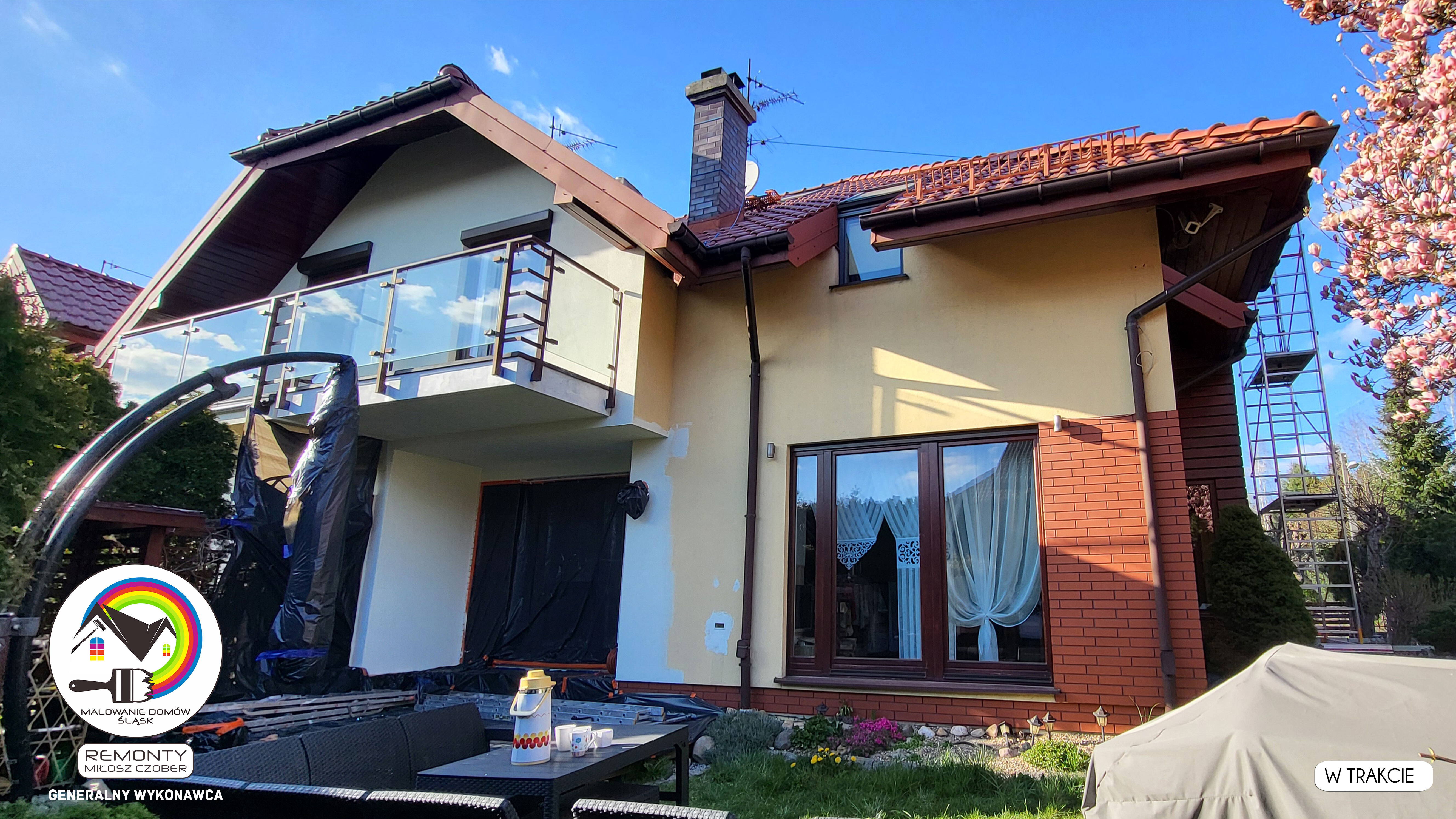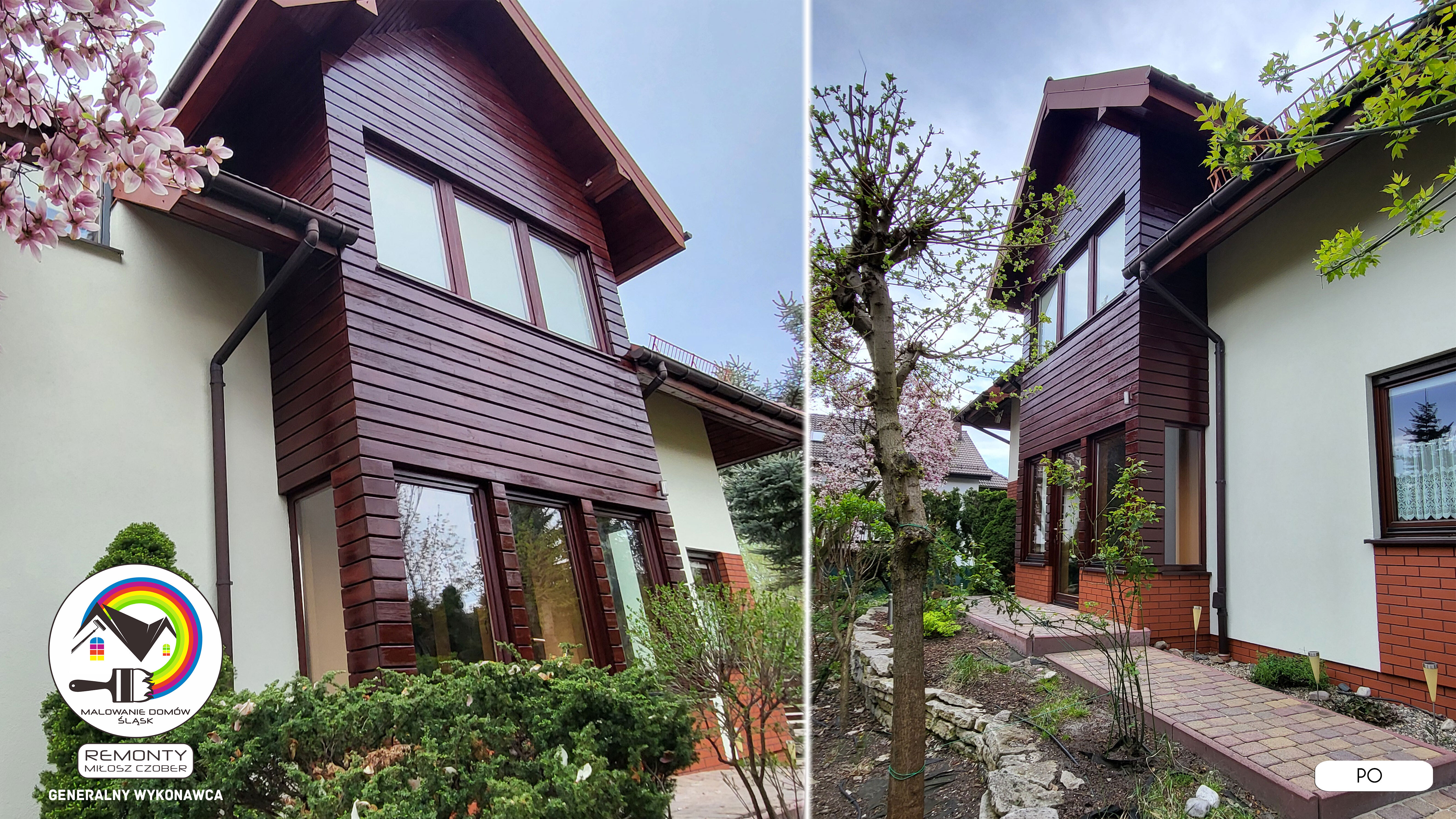 Zakres wykonanych prac: malowanie elewacji / naprawa / zabezpieczenie ściany / montaż systemu rynien / wymiana podbitki dachu / odświeżenie dachu / szlifowanie / malowanie / szlifowanie dachu / porządnie do samej blachy :-) / dach po odświeżeniu / całkowita wymiana fug na tarasie / efekt końcowy po wymianie fug / dodatkowe czyszczenie / wymiana paneli na tarasie / efekt końcowy wymiany paneli.
