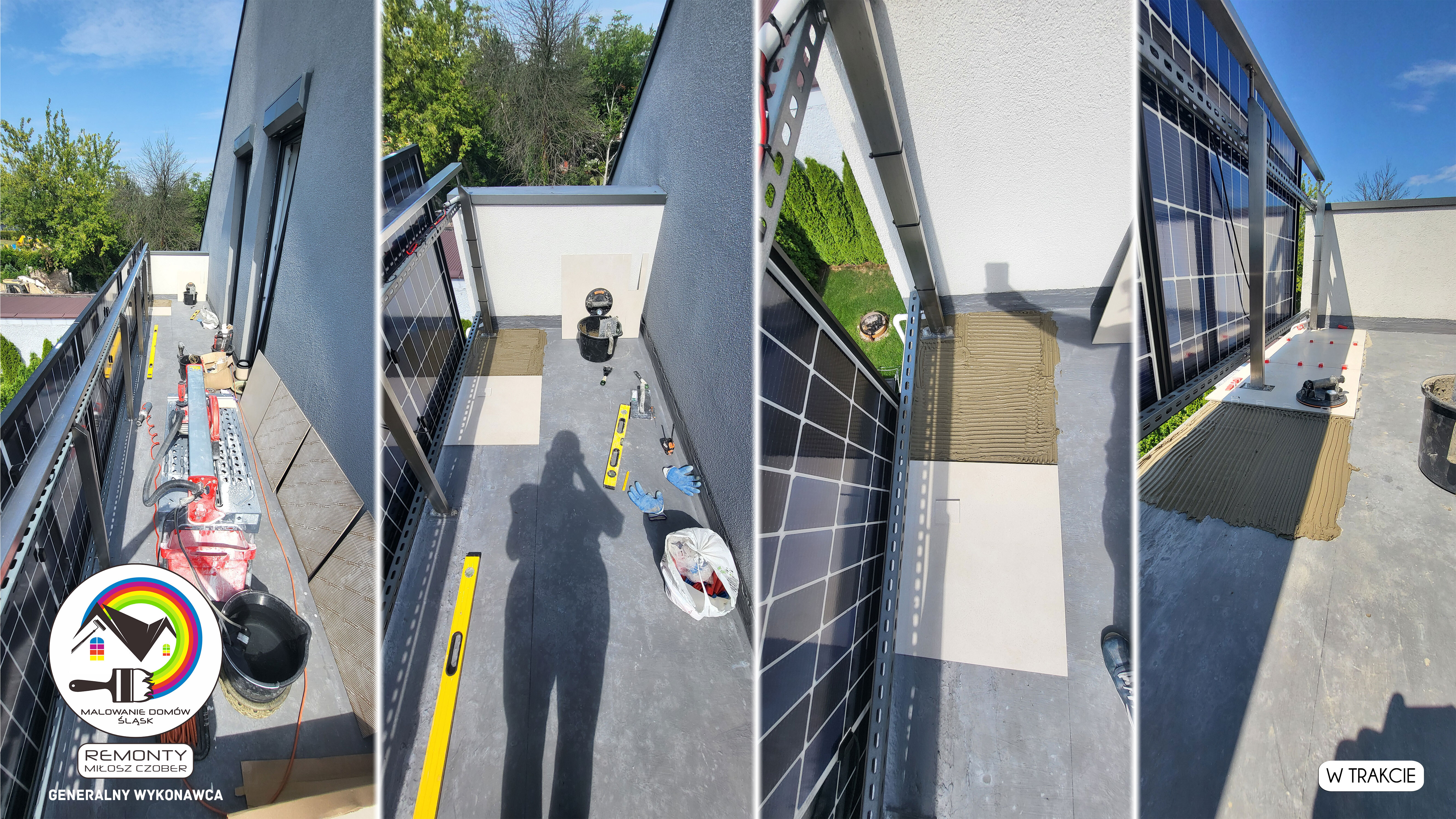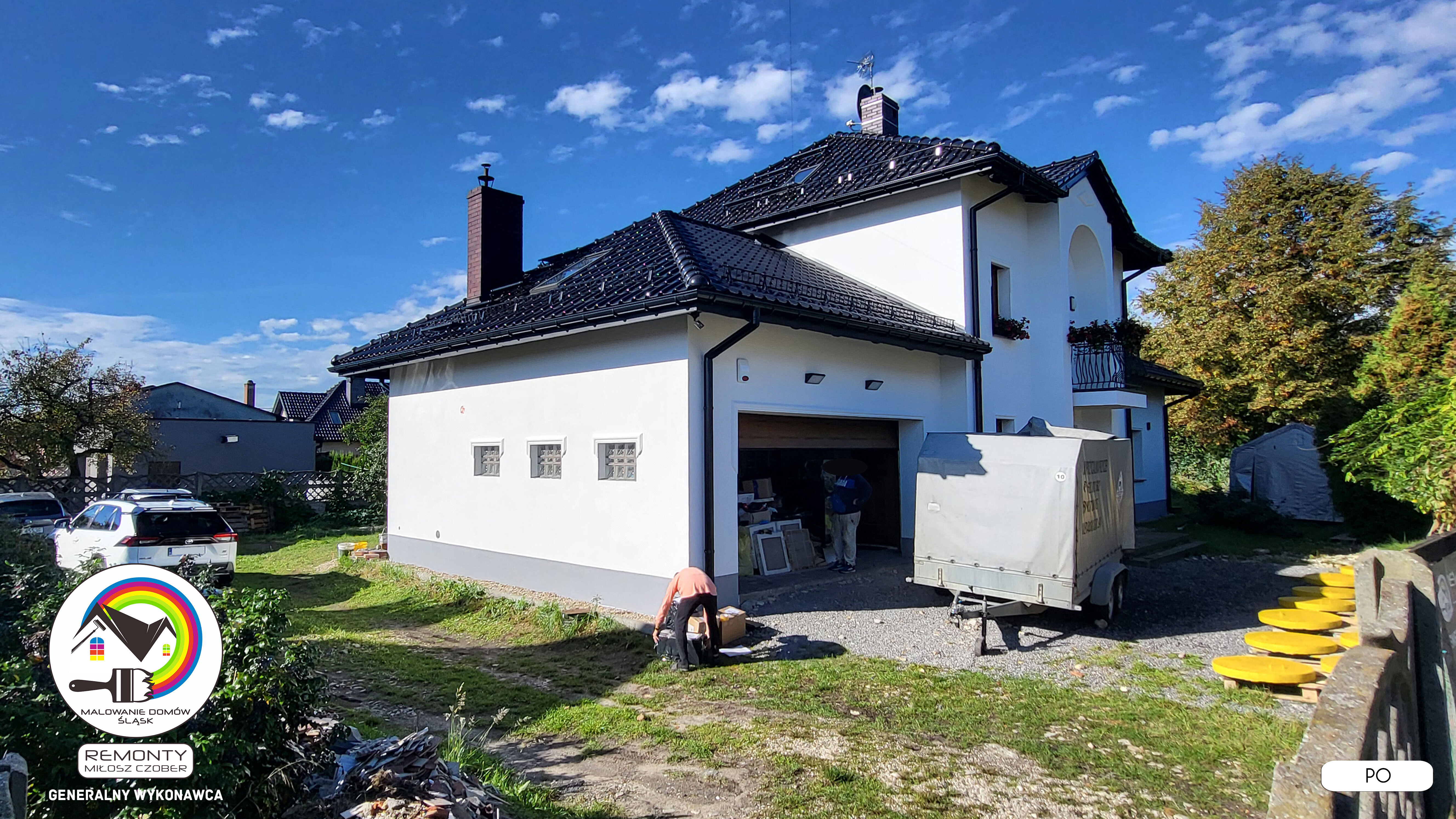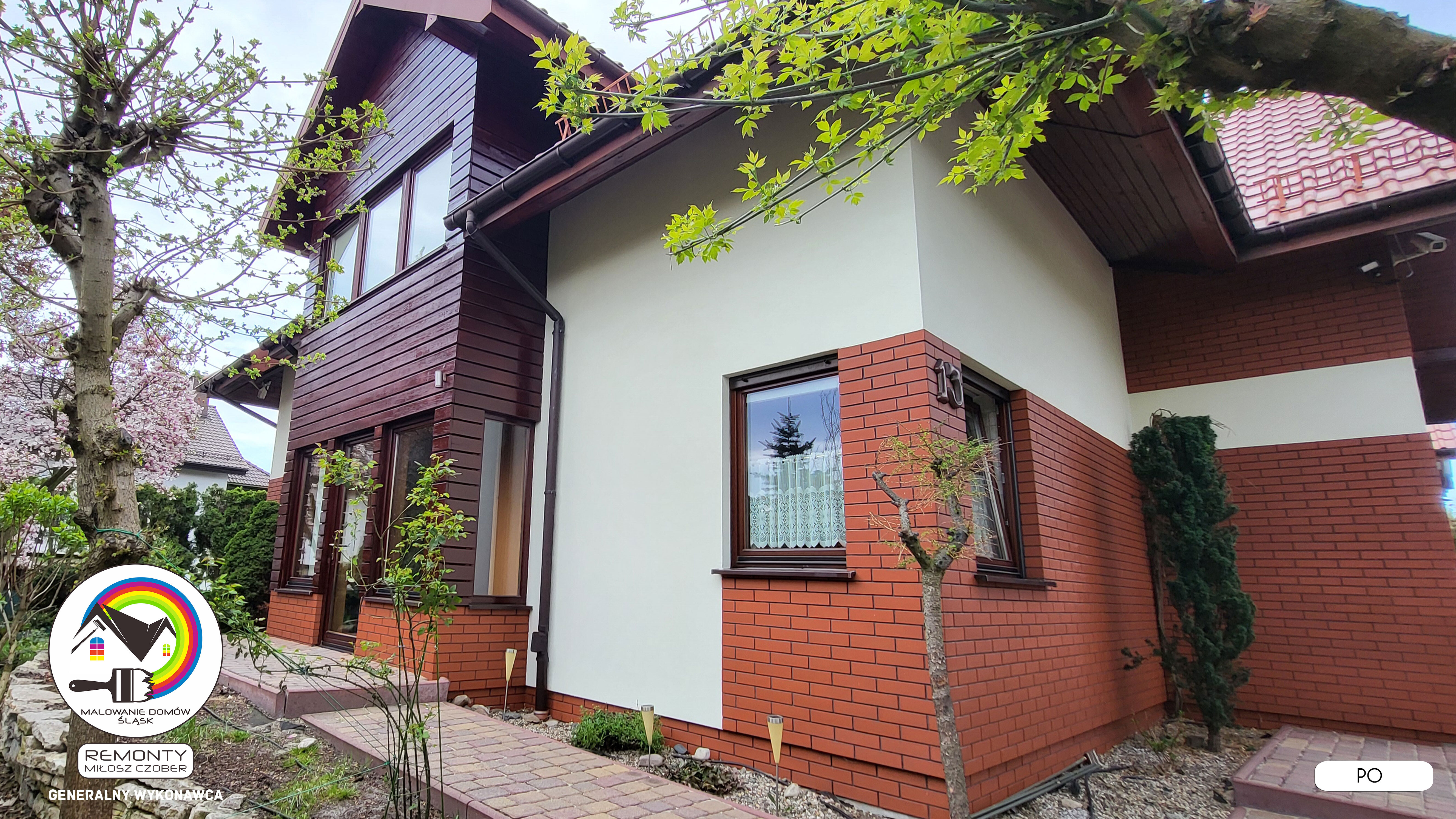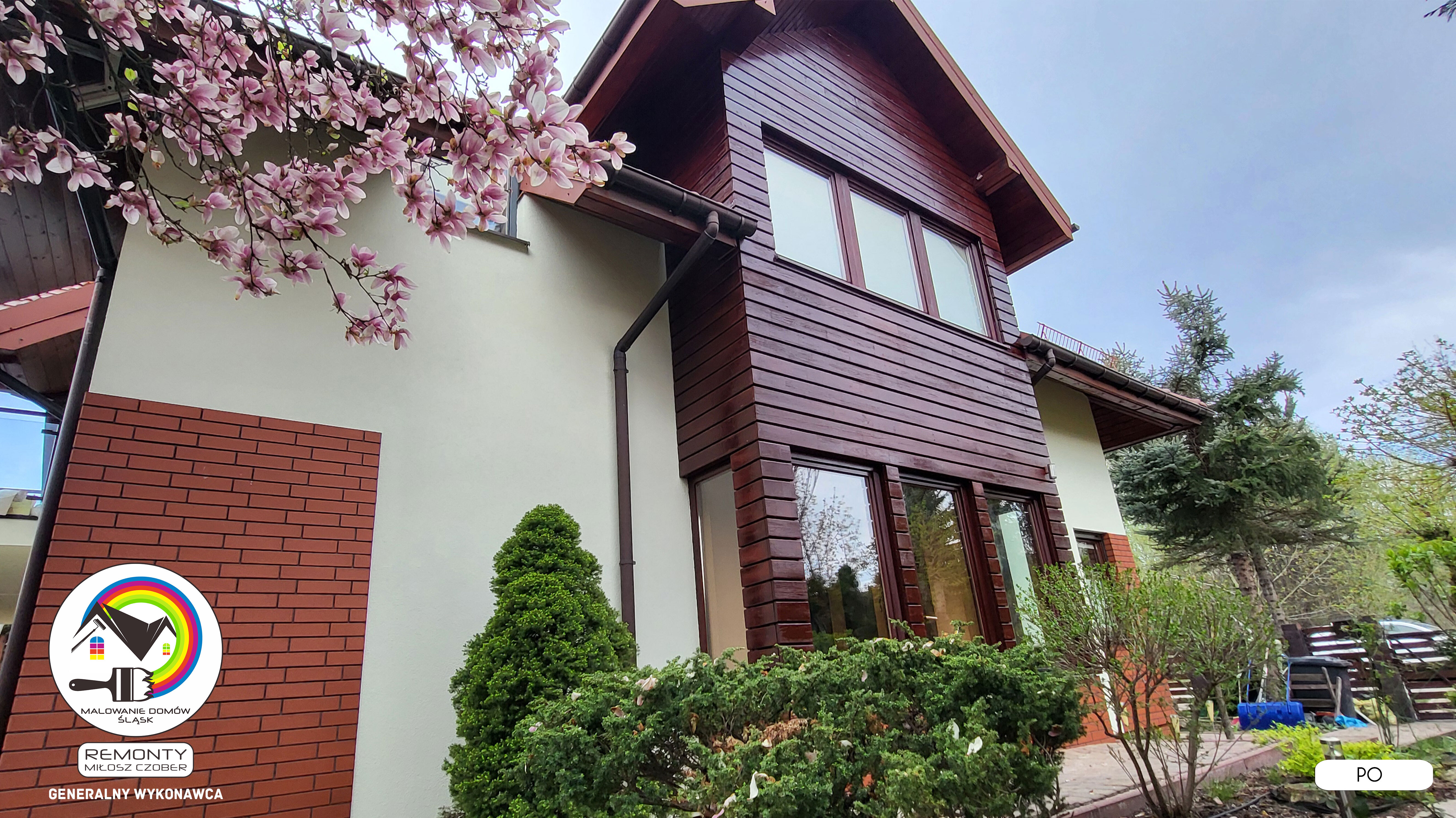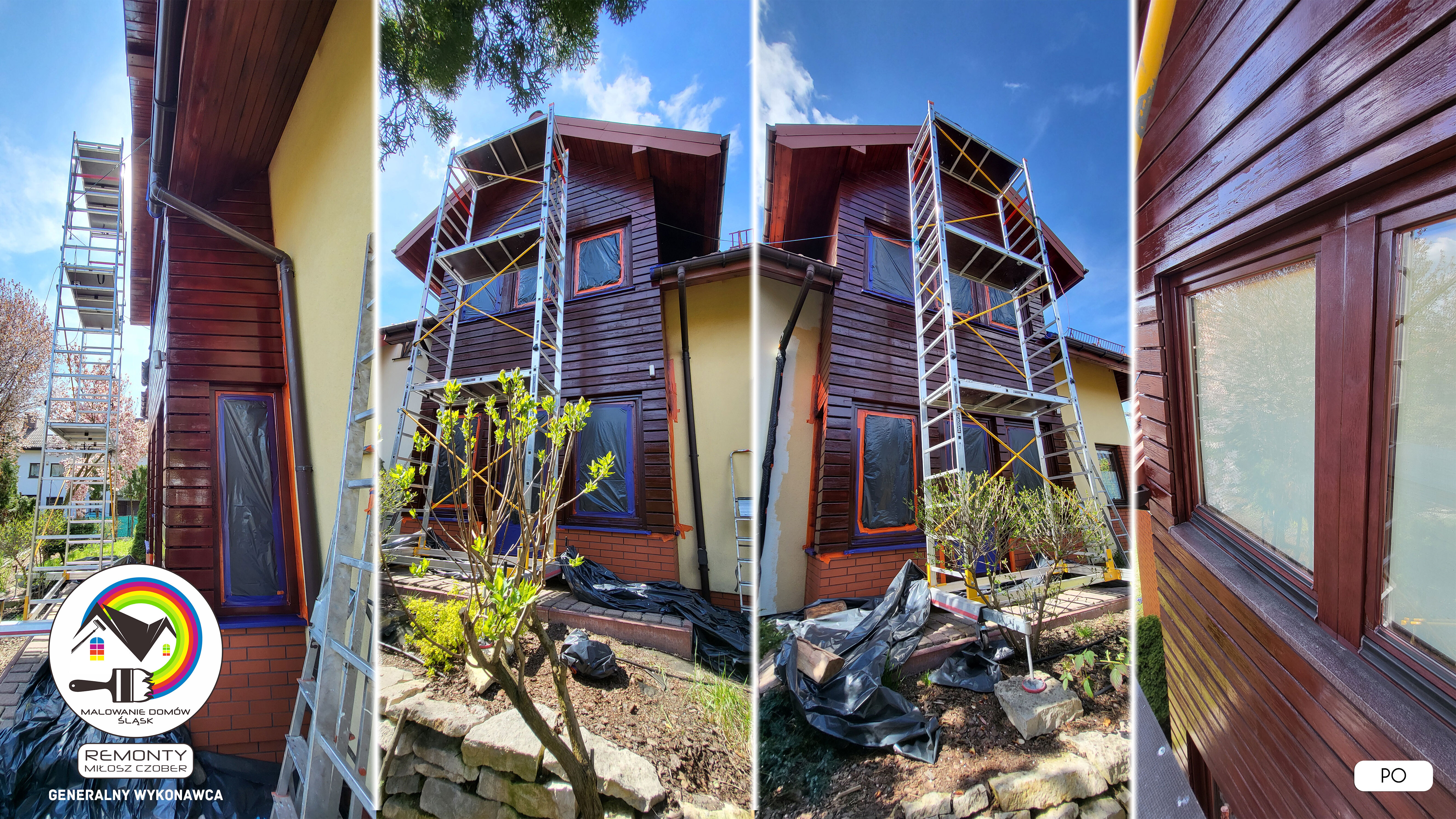 Zakres wykonanych prac: malowanie elewacji / naprawa / zabezpieczenie ściany / montaż systemu rynien / wymiana podbitki dachu / odświeżenie dachu / szlifowanie / malowanie / szlifowanie dachu / porządnie do samej blachy :-) / dach po odświeżeniu / całkowita wymiana fug na tarasie / efekt końcowy po wymianie fug / dodatkowe czyszczenie / wymiana paneli na tarasie / efekt końcowy wymiany paneli.