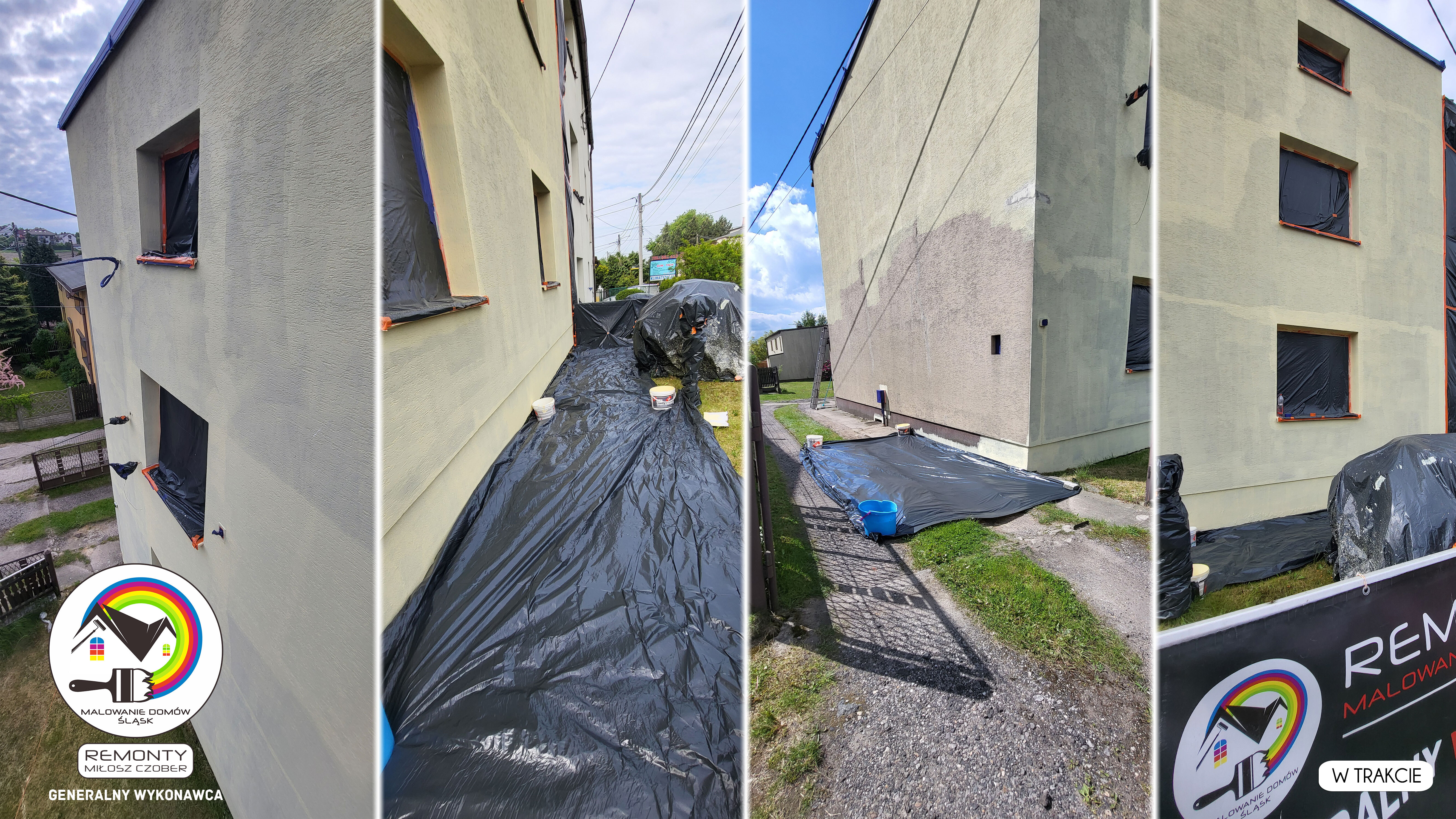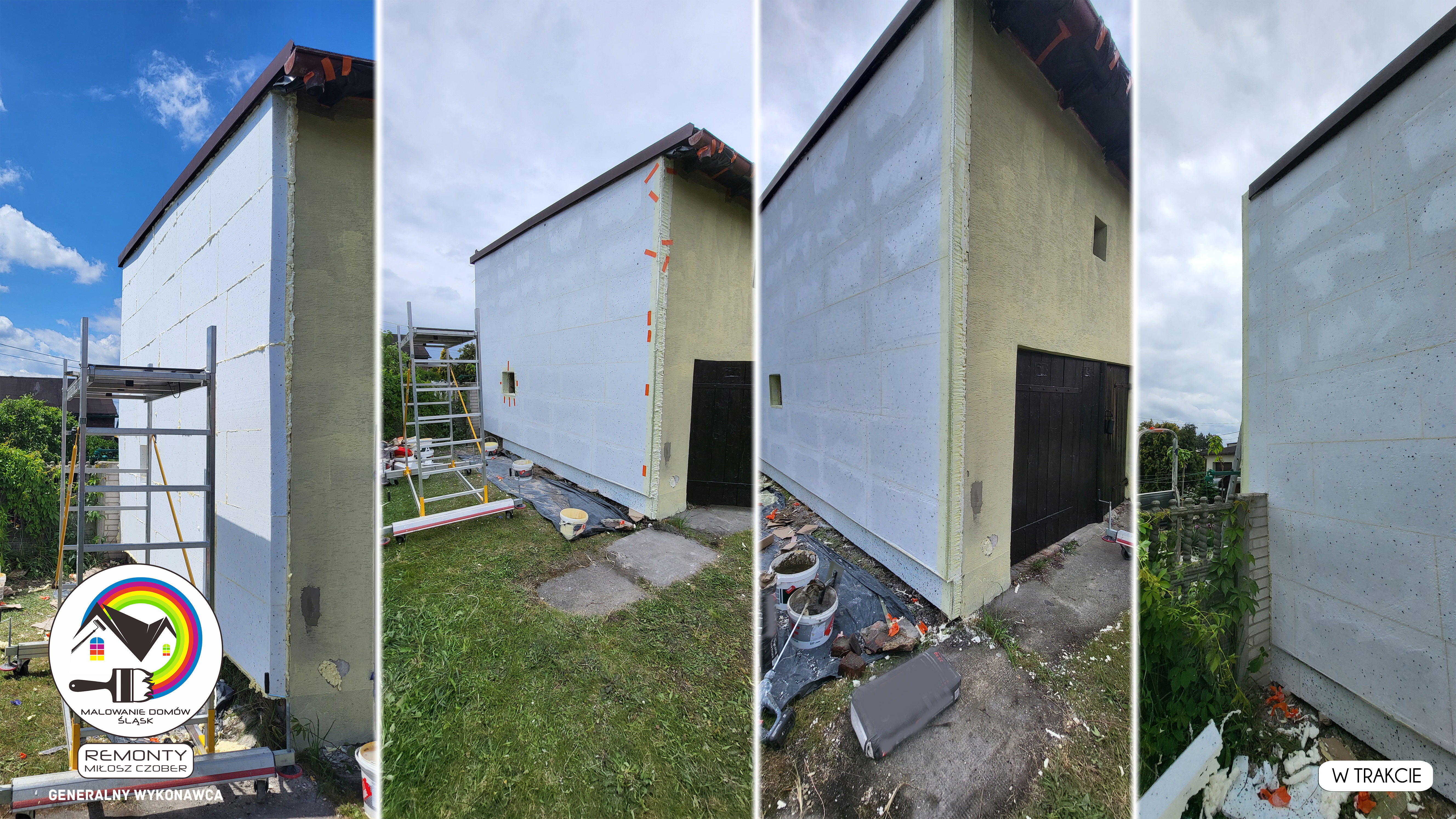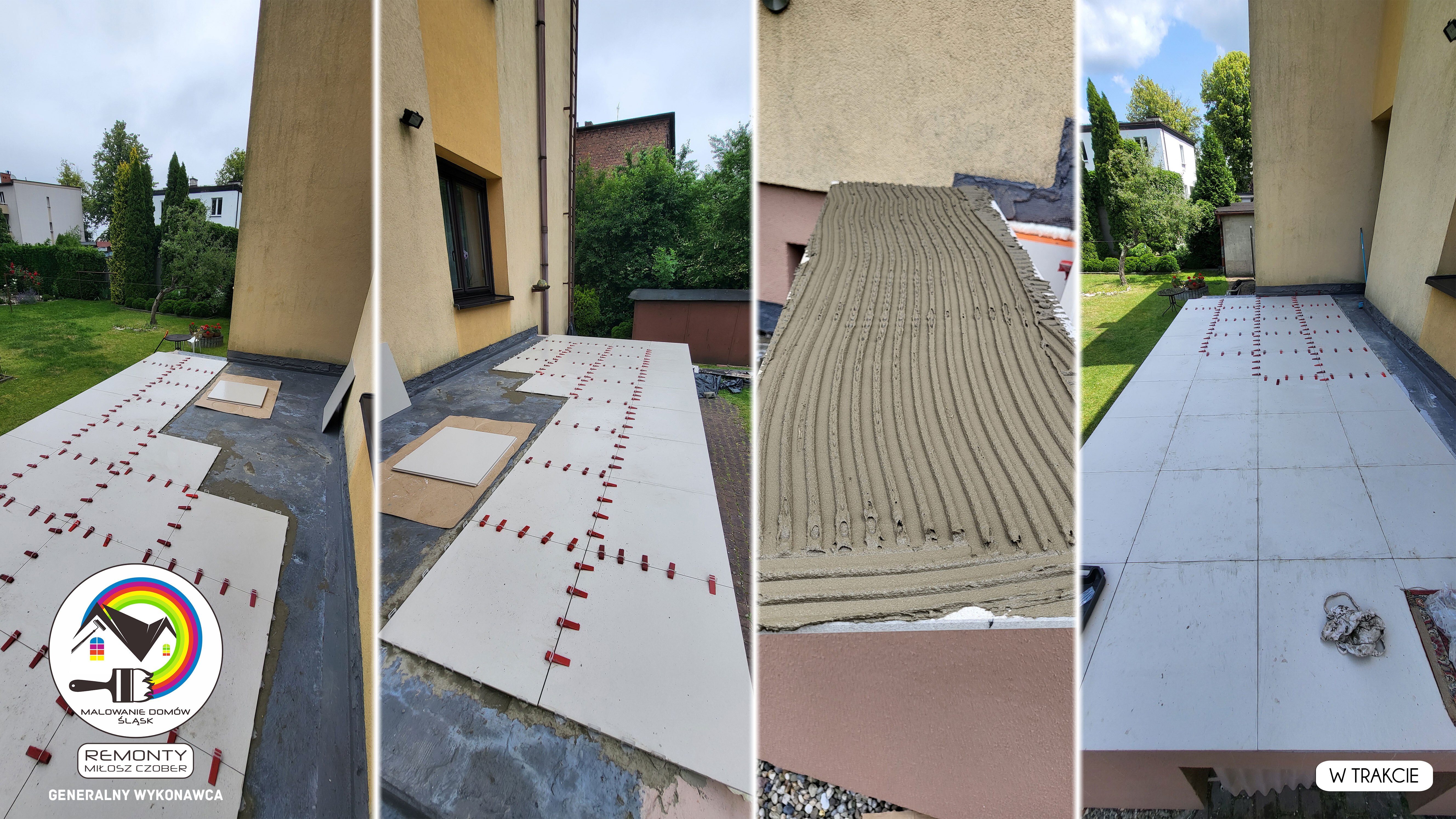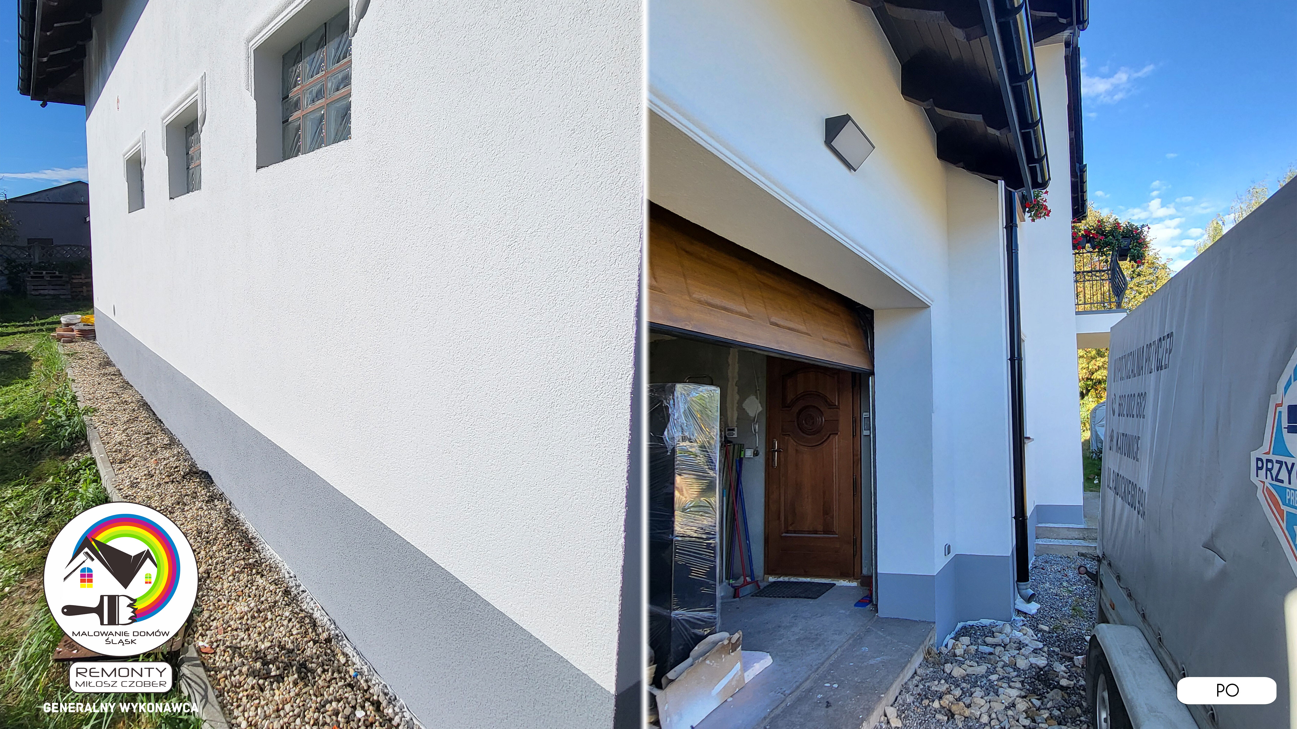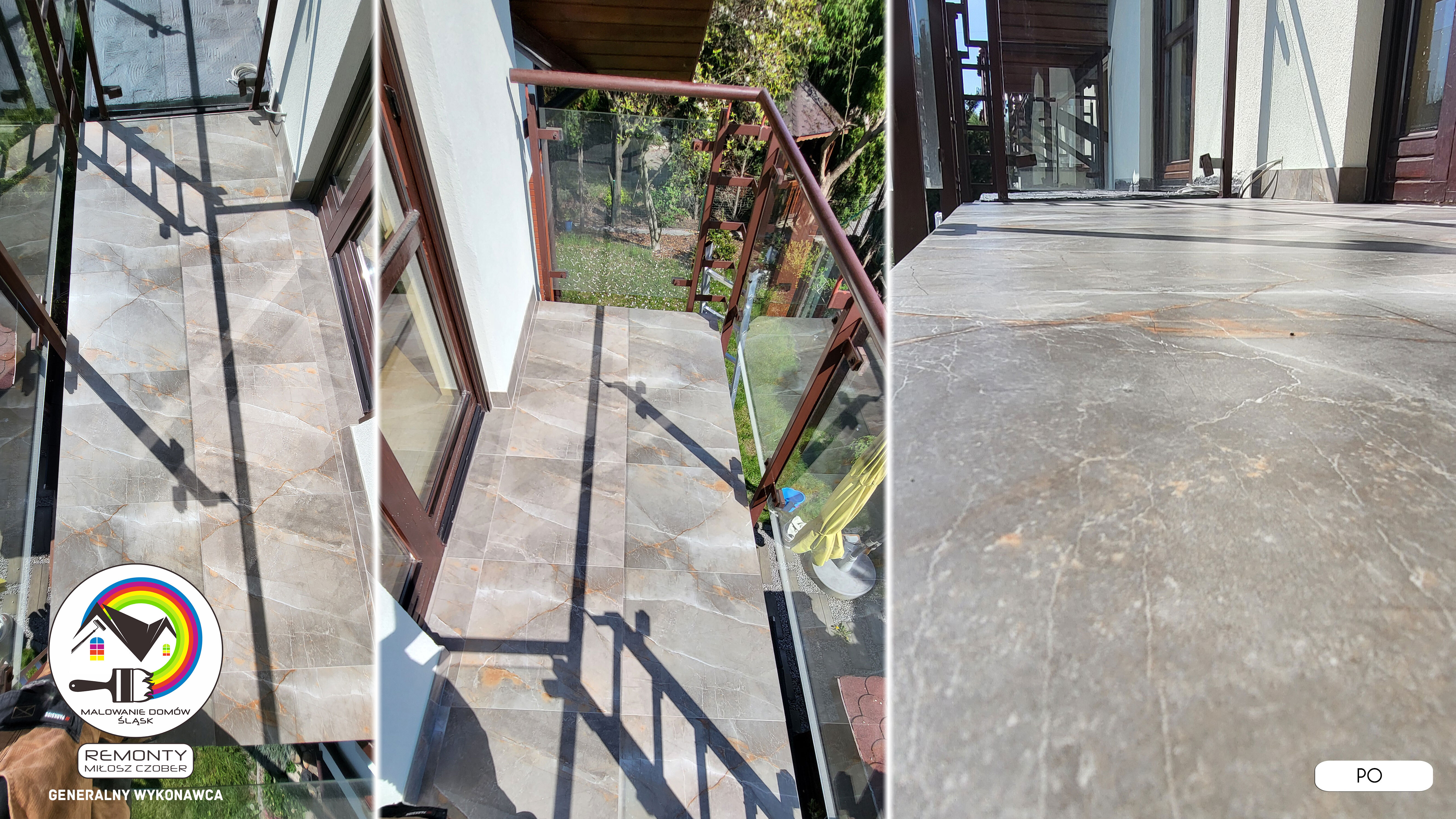 Zakres wykonanych prac: malowanie elewacji / naprawa / zabezpieczenie ściany / montaż systemu rynien / wymiana podbitki dachu / odświeżenie dachu / szlifowanie / malowanie / szlifowanie dachu / porządnie do samej blachy :-) / dach po odświeżeniu / całkowita wymiana fug na tarasie / efekt końcowy po wymianie fug / dodatkowe czyszczenie / wymiana paneli na tarasie / efekt końcowy wymiany paneli.